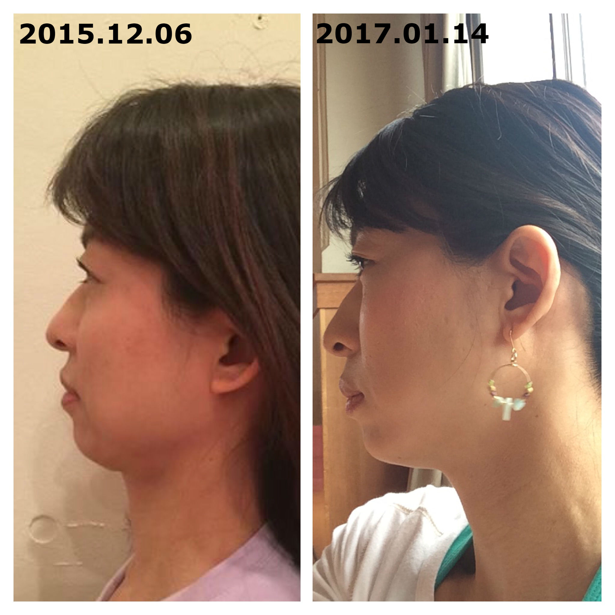 ↑私のビフォーアフター写真です。頬がスッキリして、あごのたるみも改善されています。